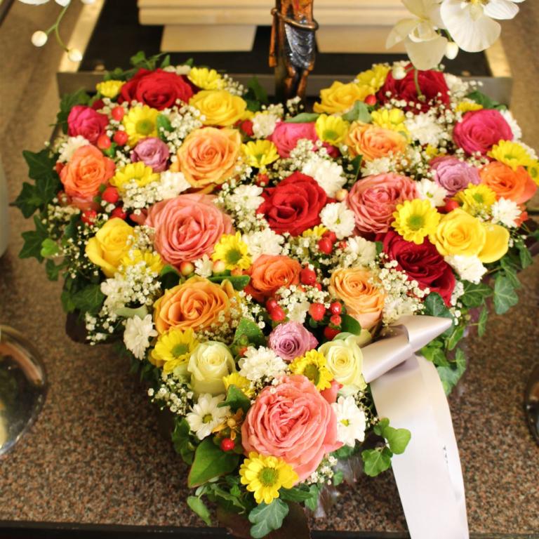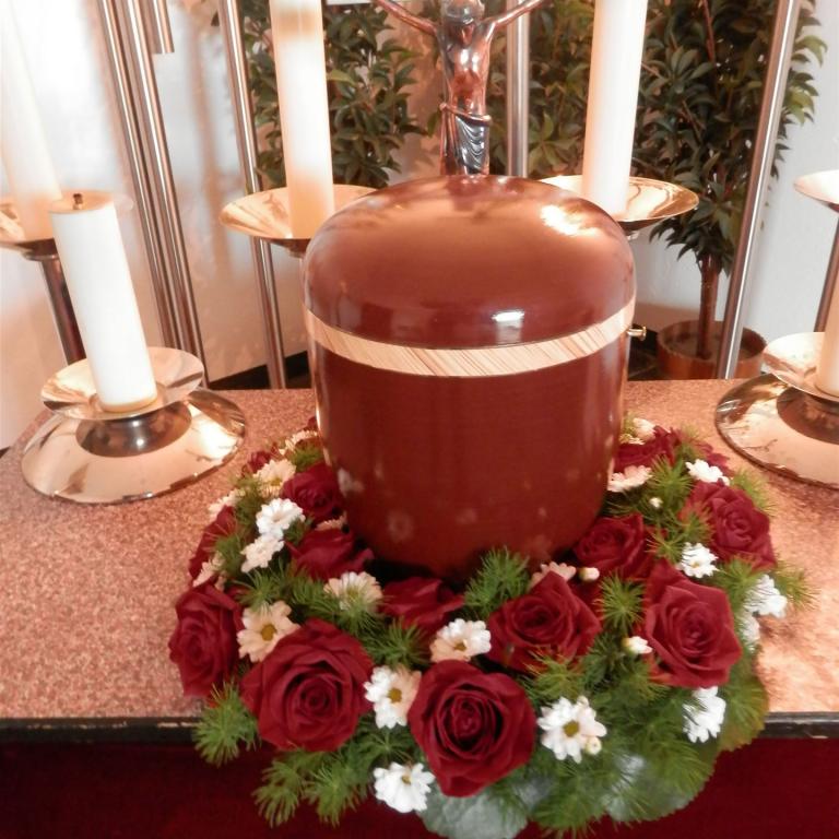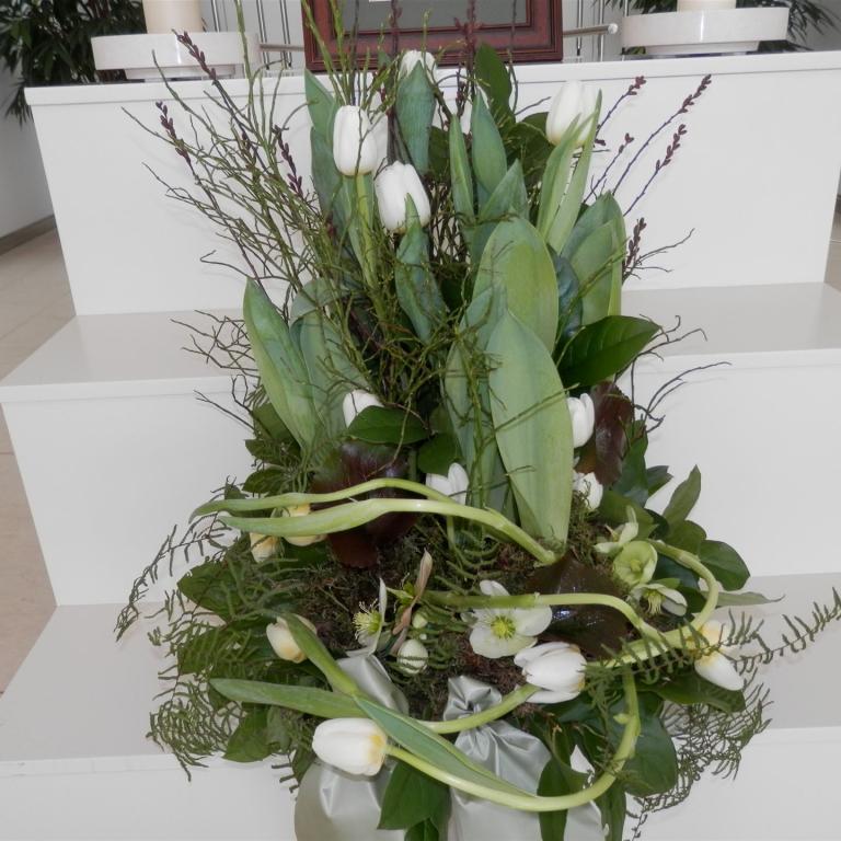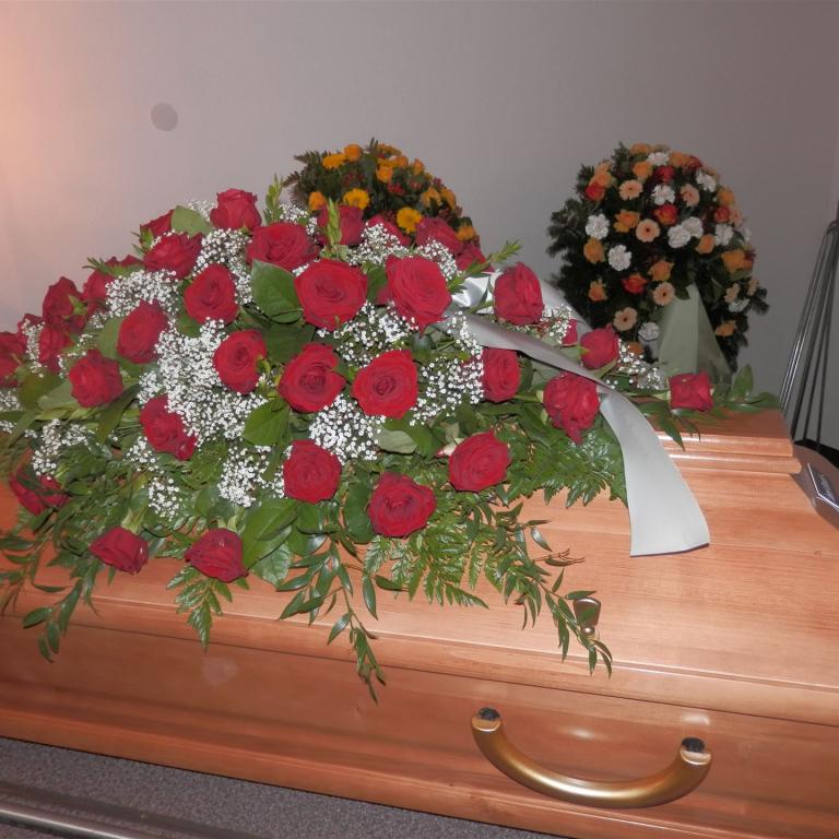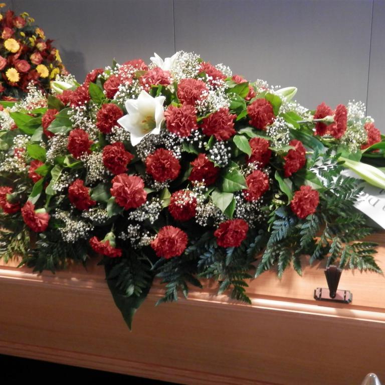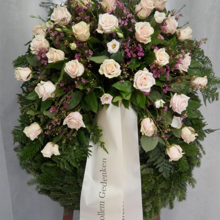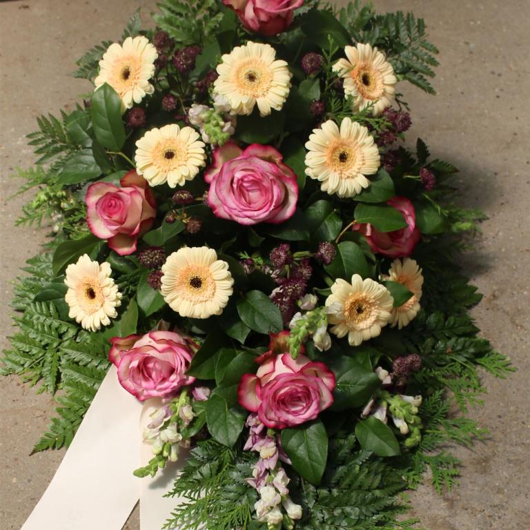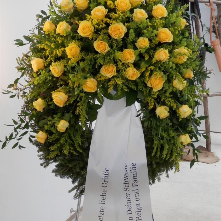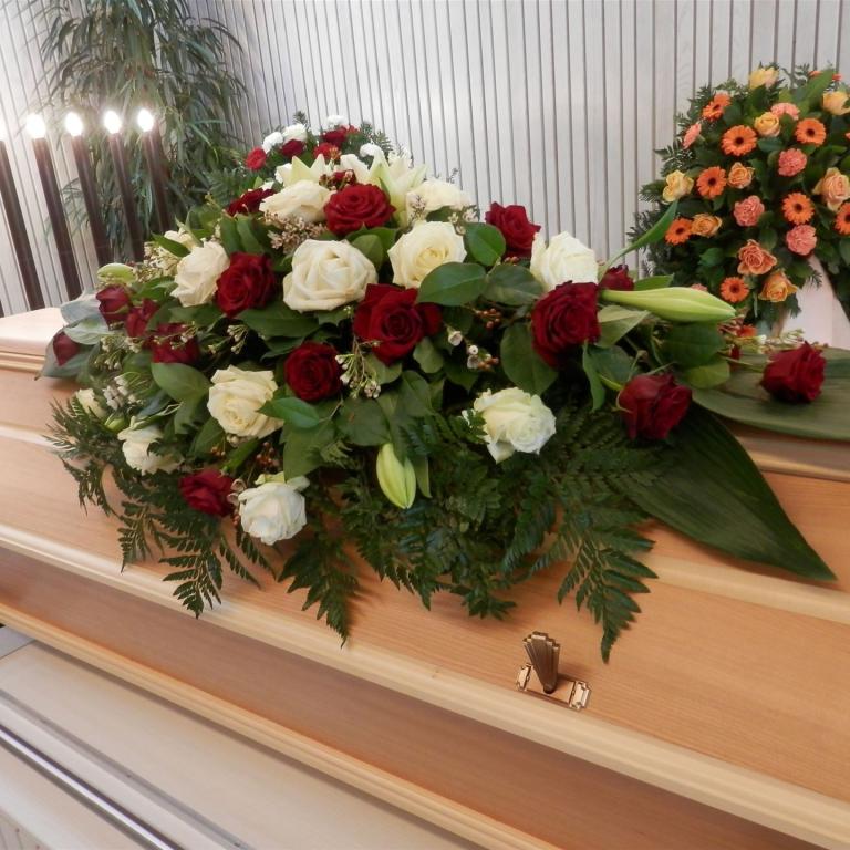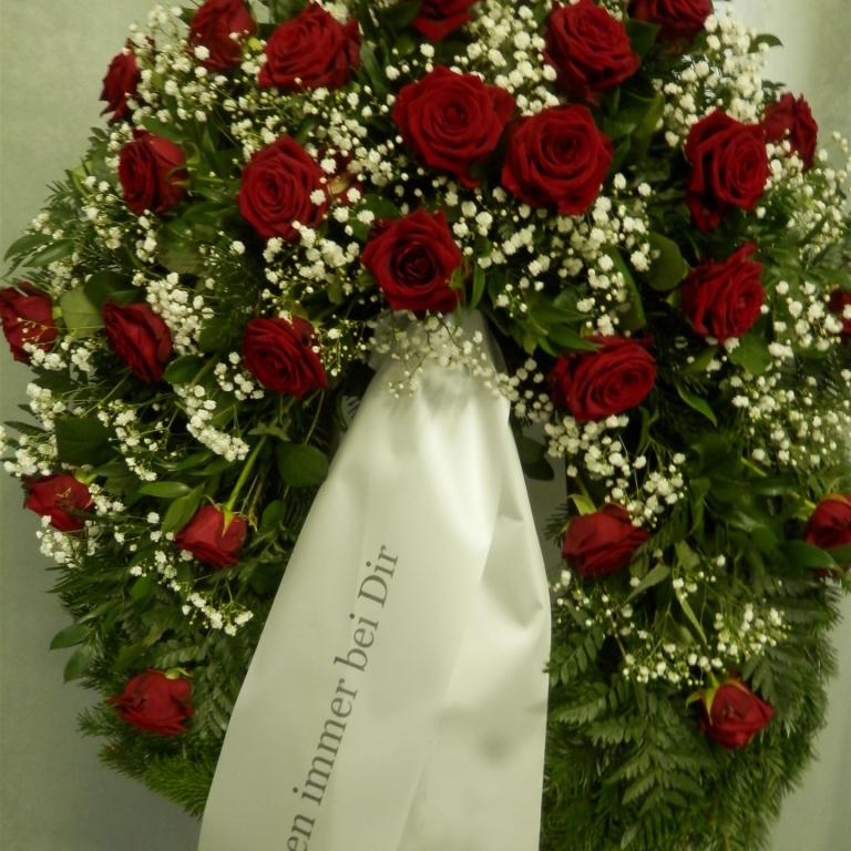 Verabschieden Sie sich von ihren Liebsten mit Kränzen, Buketts oder Sarggestecken und geben Sie mit passenden Schleifen in verschiedenen Farben eine Grußbotschaft mit auf den Weg.