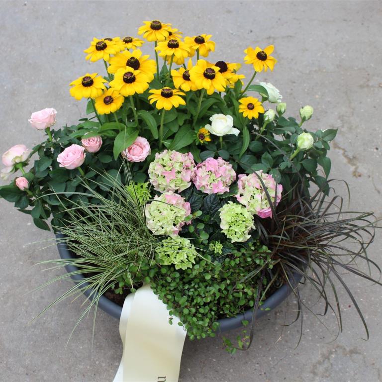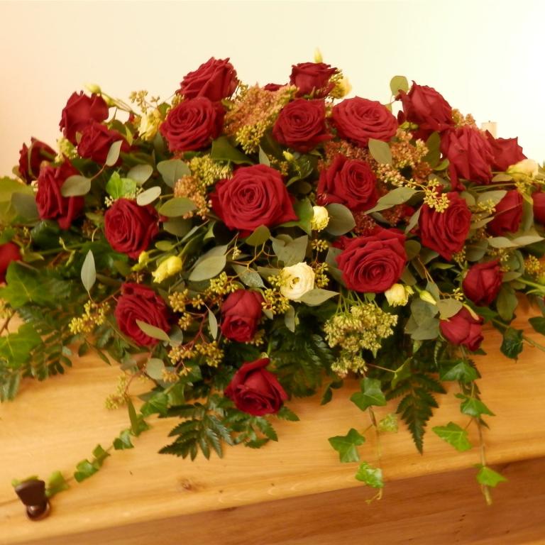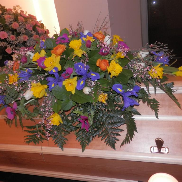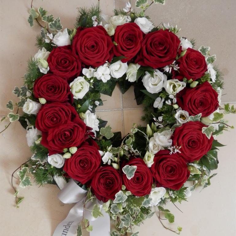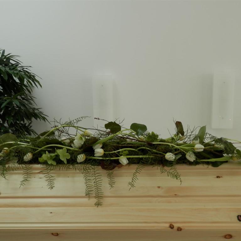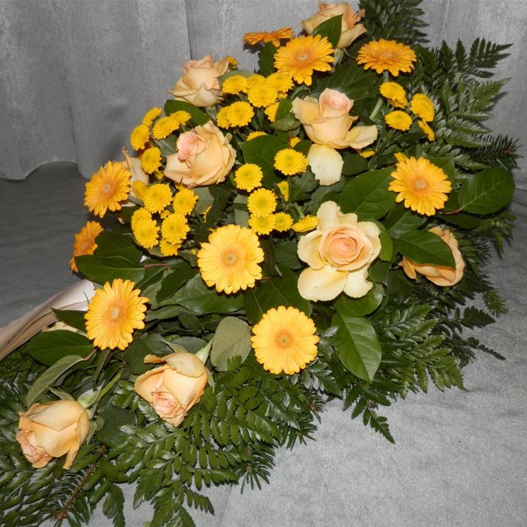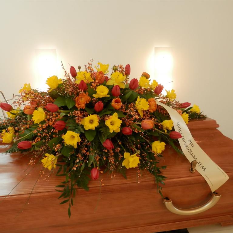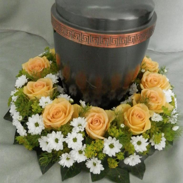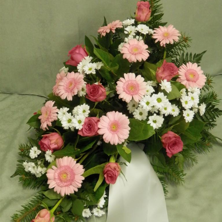 Verabschieden Sie sich von ihren Liebsten mit Kränzen, Buketts oder Sarggestecken und geben Sie mit passenden Schleifen in verschiedenen Farben eine Grußbotschaft mit auf den Weg.